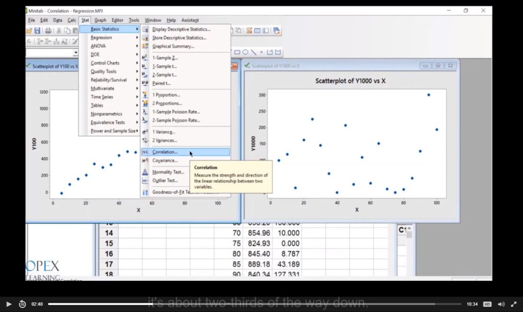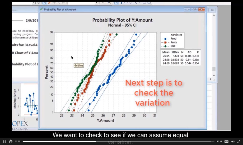 - Basic Quality Tools – Using Minitab to create Dotplots, Histograms, Anderson-Darling normality test, Probability Plot, Time Series Plot, Boxplot, Pareto charts, Scatterplot, and Graphical Summary