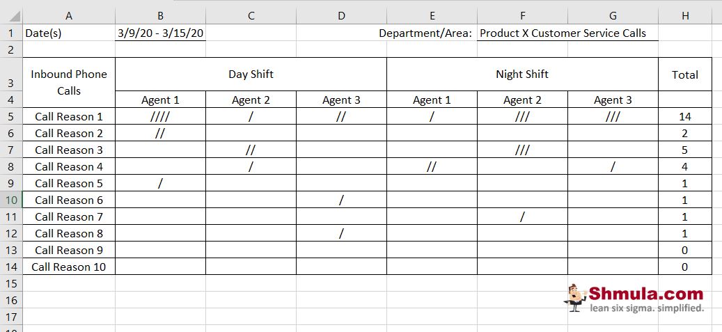 ![]() Checksheet Template A basic Checksheet template to help you get started with simple data collection to determine the size of a problem. Download XLSX file |