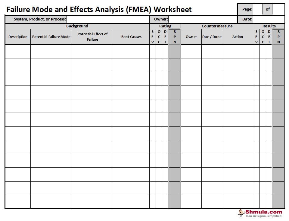![]() FMEA Template Failure Mode Effects Analysis (FMEA) Excel Worksheet that calculates and prioritizes failure modes in your process. Download XLSX file or learn more |