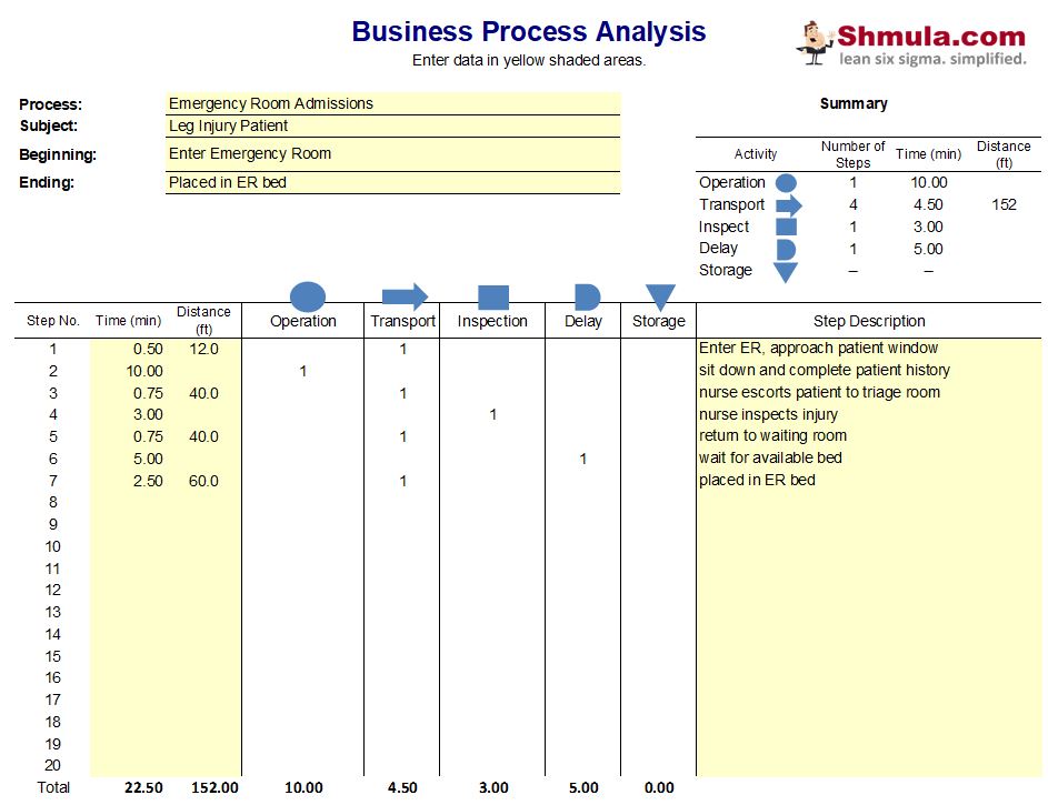 ![]() Business Process Analysis Template This template allows the us to highlight specific process steps, the type of activity, time, and distance involved in that process step. Download XLSX file or learn more |