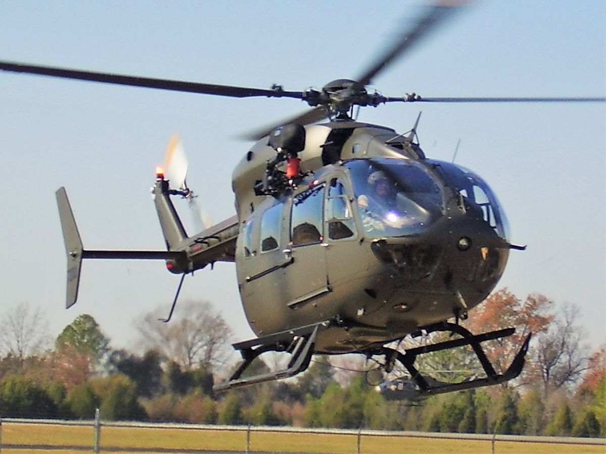 The UH-72 Lakota is a twin-engine helicopter with a single, four-bladed main rotor. The UH-72 is a militarized version of the Eurocopter EC145 and was
