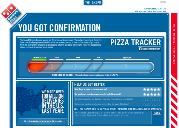 - The Domino’s Tracker is fun for the customer – it’s actually pretty cool.